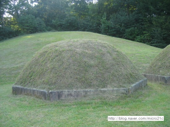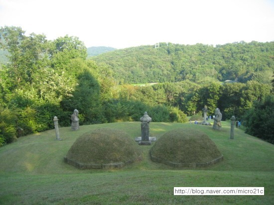 봉분의 앞에는 묘표가 있는데, 구름무늬와 복련을 조각한 대석(93×58×29), 월두형의 비신(54×17.5×140)으로 되어 있다. 묘표의 전면에는 "德興大院君墓河東府大夫人鄭氏之墓"라는 명문이 있다.